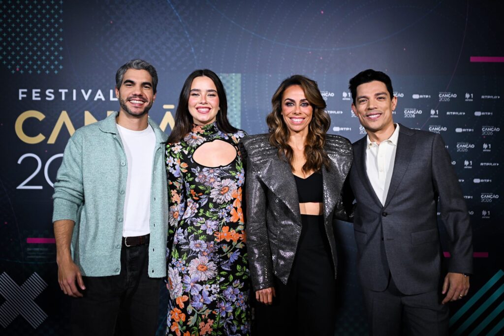 Prowadzący Festival da Canção 2026 :Vasco Palmeirim, Filomena Cautela, Catarina Maia oraz Alexandre Guimarães. Fot. RTP