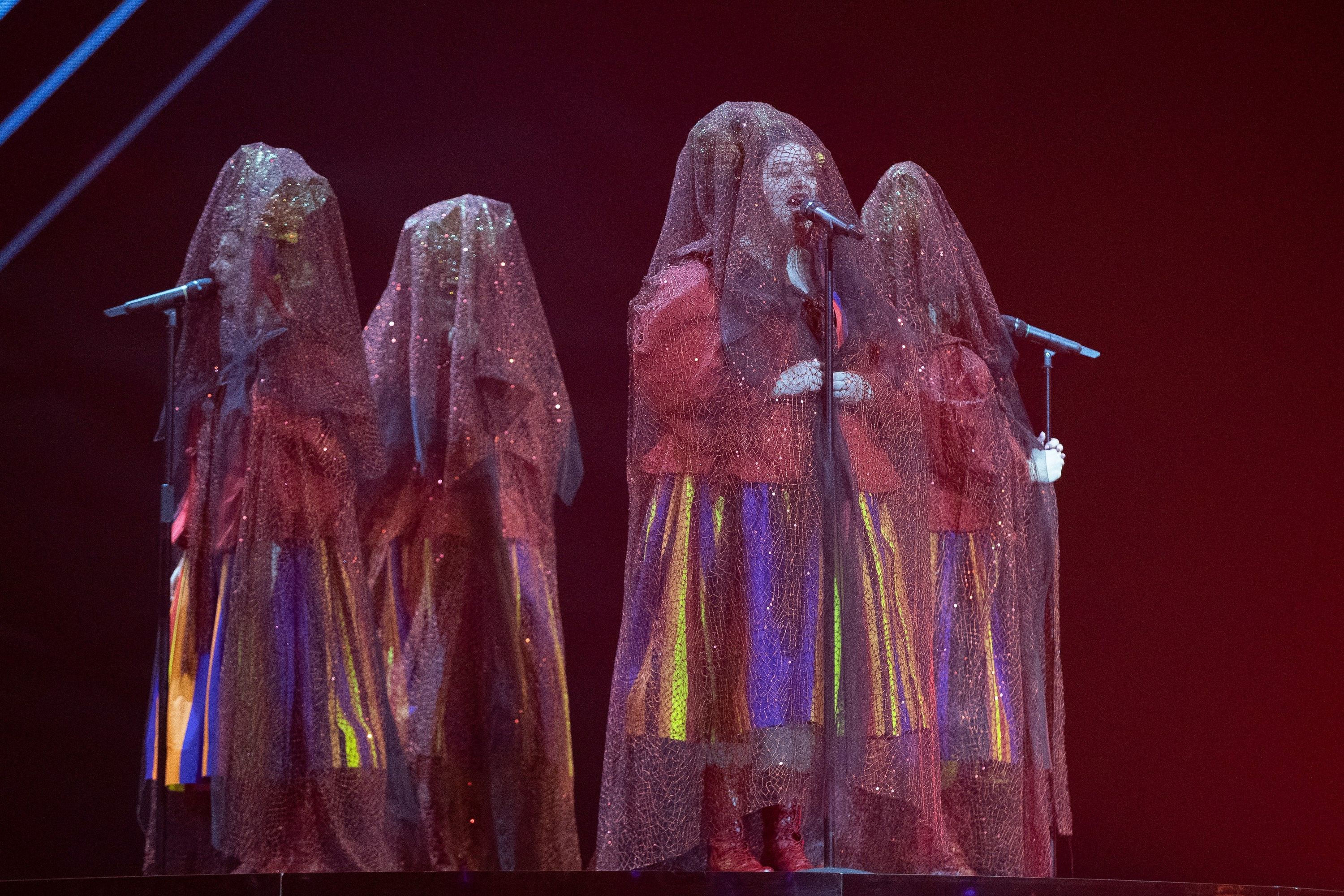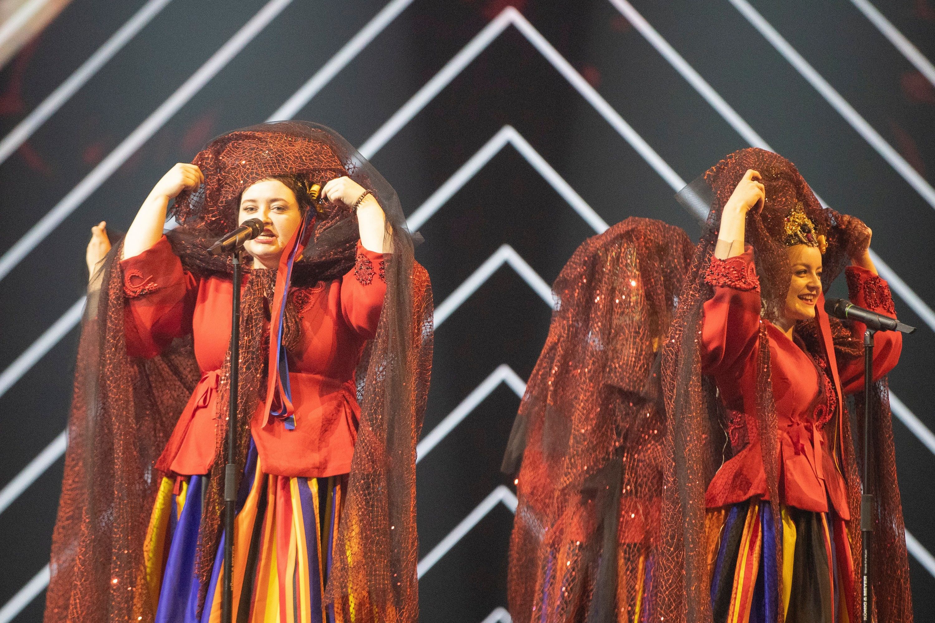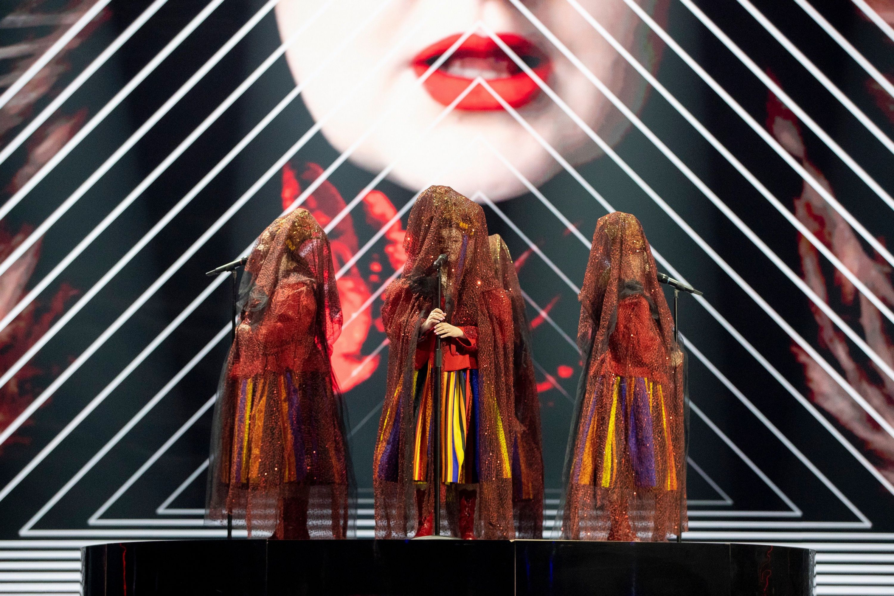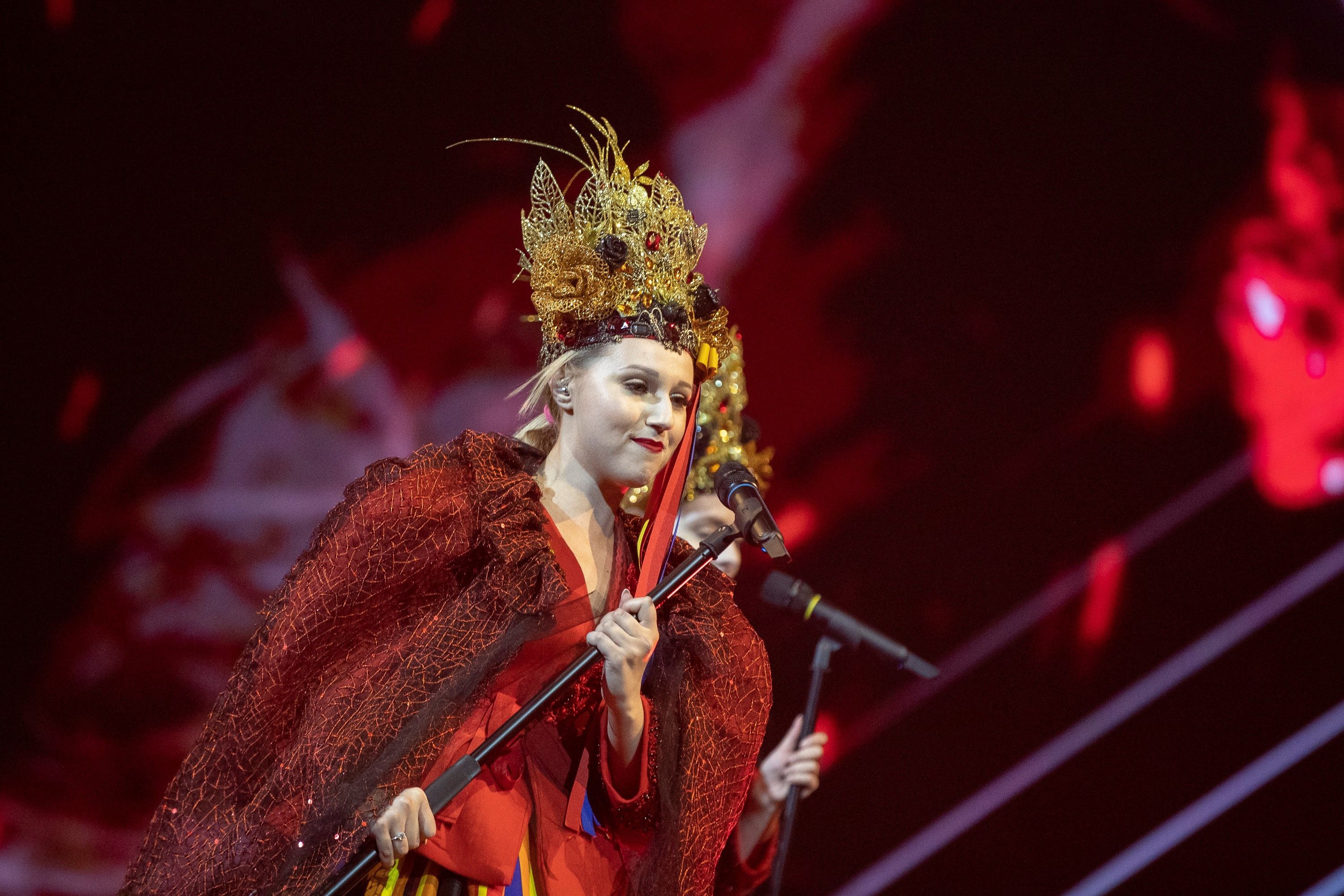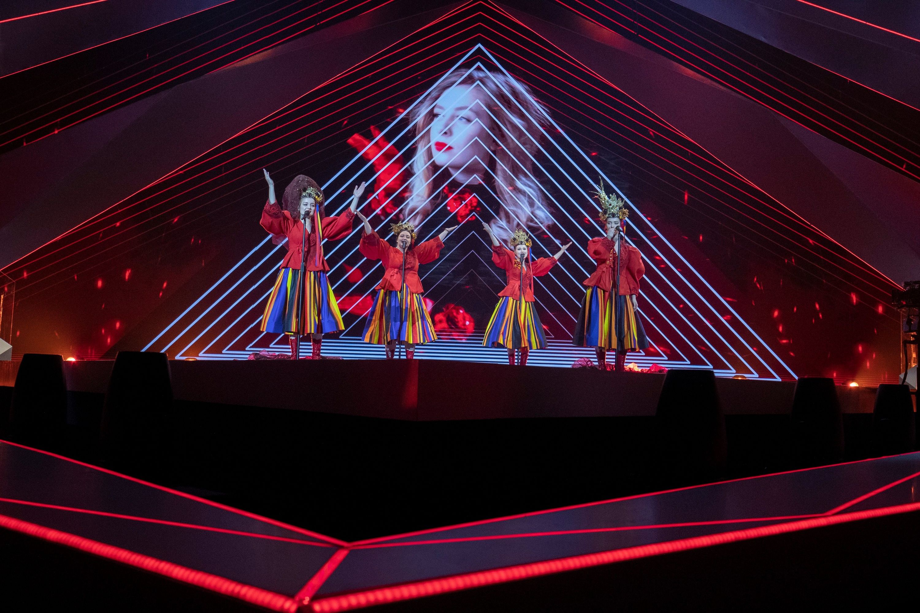 Dziewczyny rozpoczęły występ stojąc na obrotowym podeście. Nie jest to nowy rekwizyt na eurowizyjnej scenie, podobny zastosowała chociażby Australia w 2017 roku. W wizualizacjach przeważa czerń i wyrazista czerwień, pojawiają się twarze dziewczyn. Stroje naszych reprezentantek na pewno będą zapamiętane – mają na sobie czerwone kaftany, spódnice w kolorowe prążki i intrygujące elementy na głowach – złote korony przykryte woalkami. Na koniec występu w wizualizacjach pojawia się ogień. Prezentacja jest przemyślana, złożona, wymaga jeszcze dopracowania. O wokale w przypadku grupy Tulia nie powinniśmy się martwić.